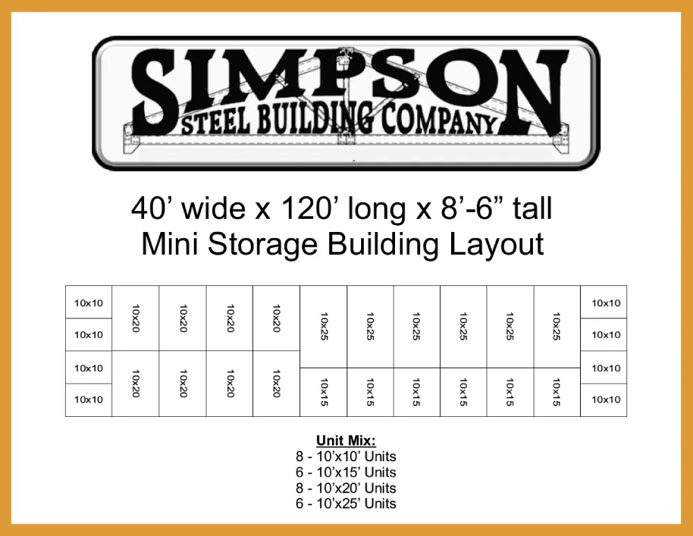 40x120x8.5 Steel Mini Storage Building Kit