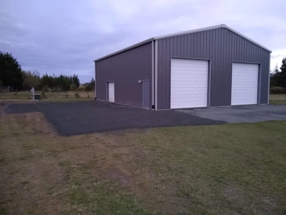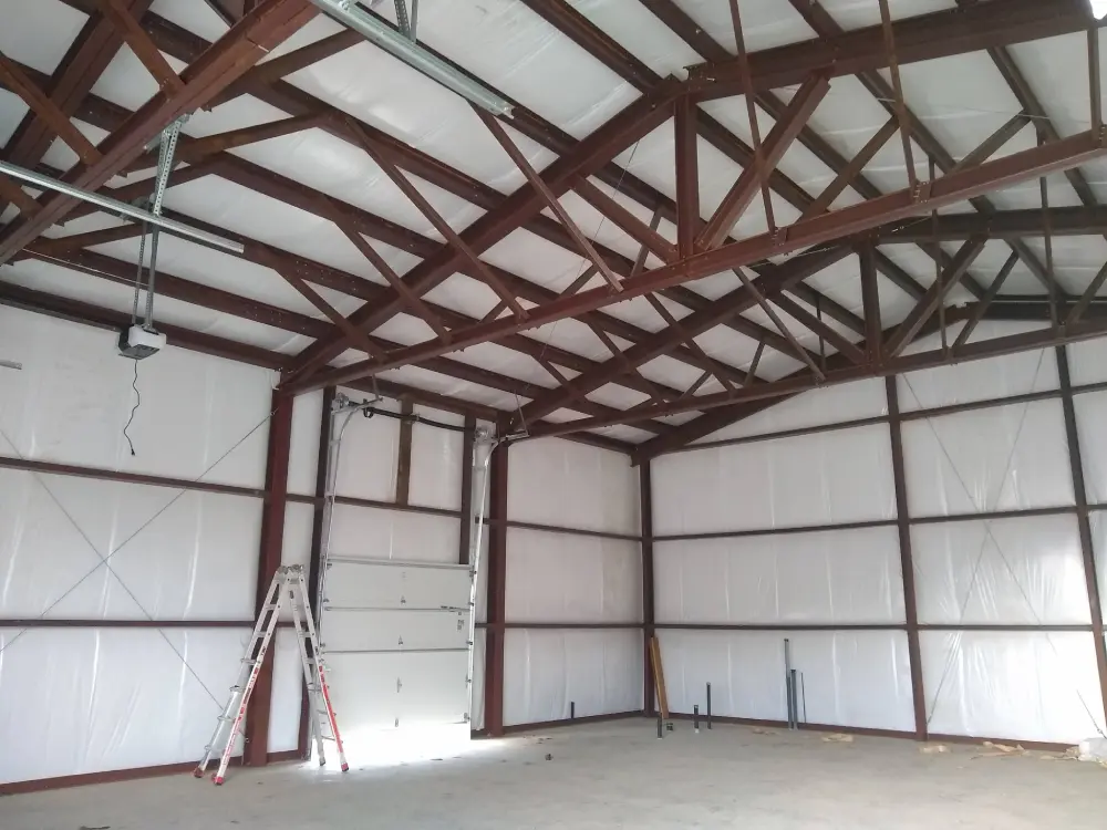 All structural members are high strength 57,000 psi steel, cut to length, and pre-punched for easy assembly with either 1/2″ bolts or self-drilling screws. Roof and Wall panels are 26ga. 80,000 psi painted galvanized steel. All roof and wall panels are attached with self-drilling fasteners. Panel fasteners are color matched. All panel laps are fastened with self-drilling fasteners. Roofing side laps receive roll mastic sealant. Gable ends and eave of roof receive a die formed foam closure to “bird-proof” the building, sealing off all openings.
